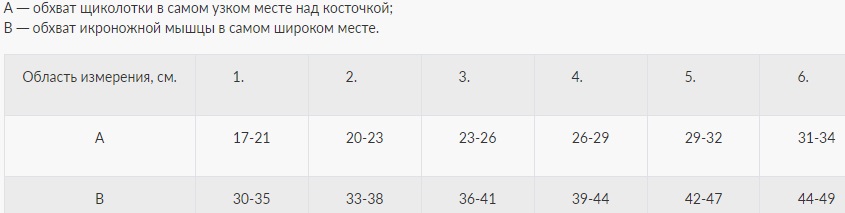 ВАЖНО! Измерение участков нужно проводить утром до появления отёчности на ногах. Размер изделия подбирать по таблице подбора и согласно конструктивным особенностям конечности, так как изделия разработаны на длину ноги от 65 до 74 см. Компрессия на ноге распределена градуировано, максимальное давление в области щиколотки (100%), в области икроножной мышцы снижается (70%).