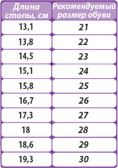 Таблица размеров