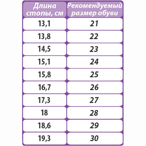Таблица размеров